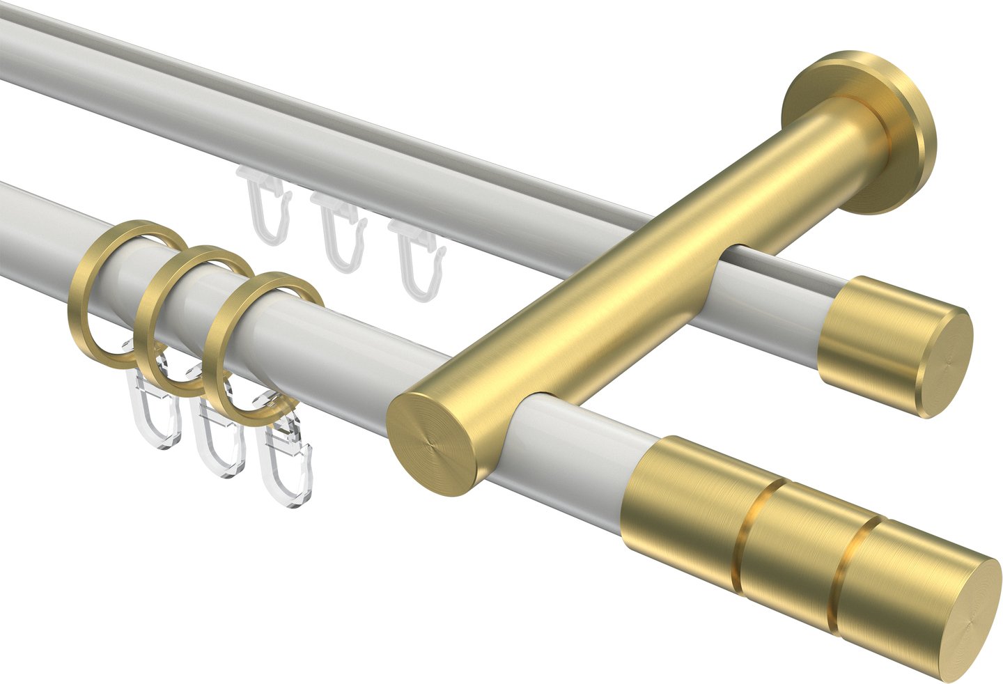 Rundrohr-Innenlauf Gardinenstangen aus Aluminium / Metall in 20 mm Ø, 2-läufig, Modell PLATON - Elanto Weiß / Messing-Optik