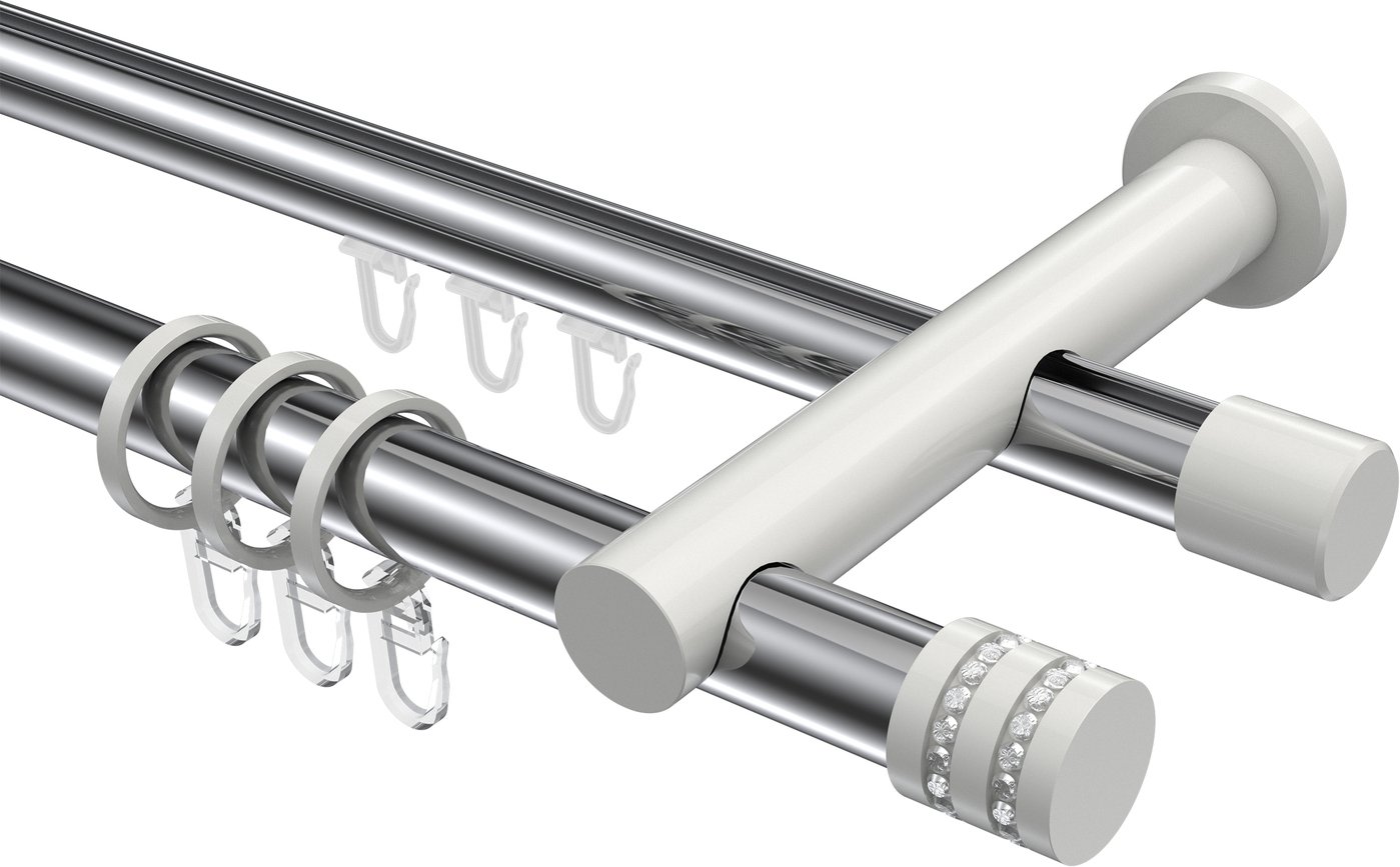 Rundrohr-Innenlauf Gardinenstangen aus Aluminium / Metall in 20 mm Ø, 2-läufig, Modell PLATON - Estana Chrom / Weiß