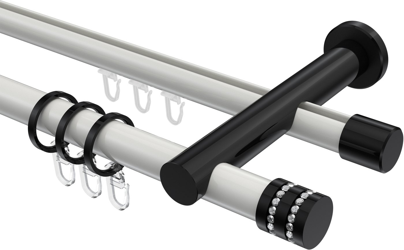 Rundrohr-Innenlauf Gardinenstangen aus Aluminium / Metall in 20 mm Ø, 2-läufig, Modell PLATON - Estana Weiß / Schwarz