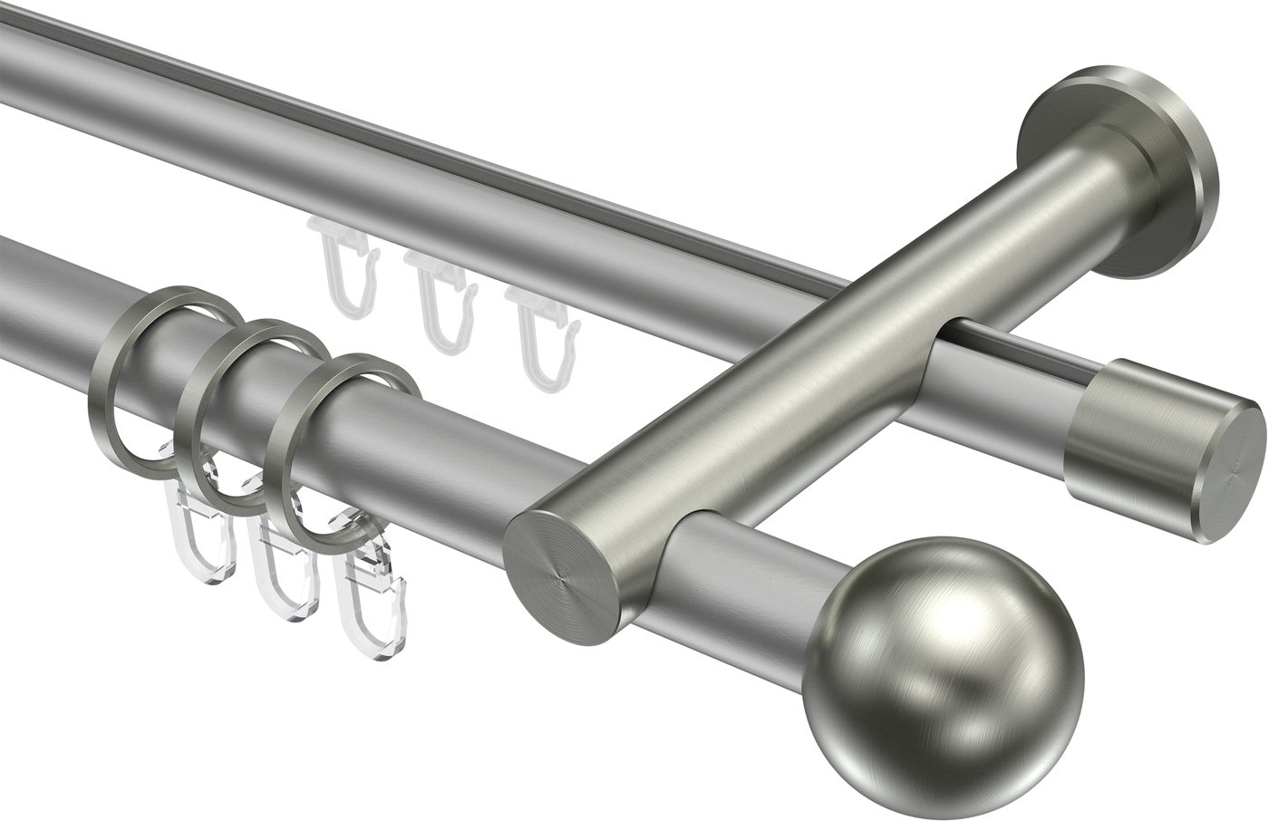 Rundrohr-Innenlauf Gardinenstangen aus Aluminium / Metall in 20 mm Ø, 2-läufig, Modell PLATON - Luino Silbergrau / Edelstahl-Optik