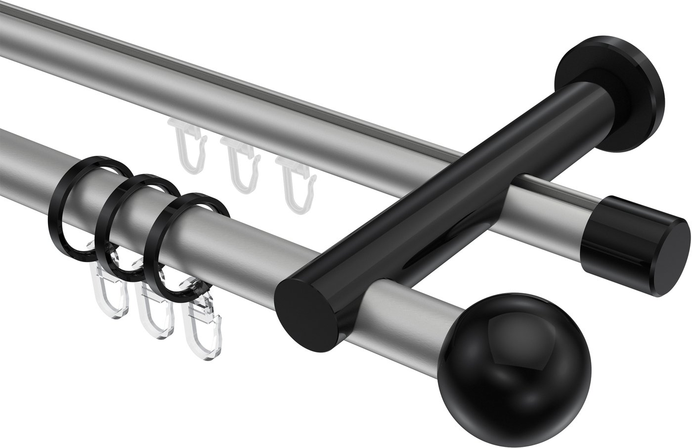 Rundrohr-Innenlauf Gardinenstangen aus Aluminium / Metall in 20 mm Ø, 2-läufig, Modell PLATON - Luino Silbergrau / Schwarz