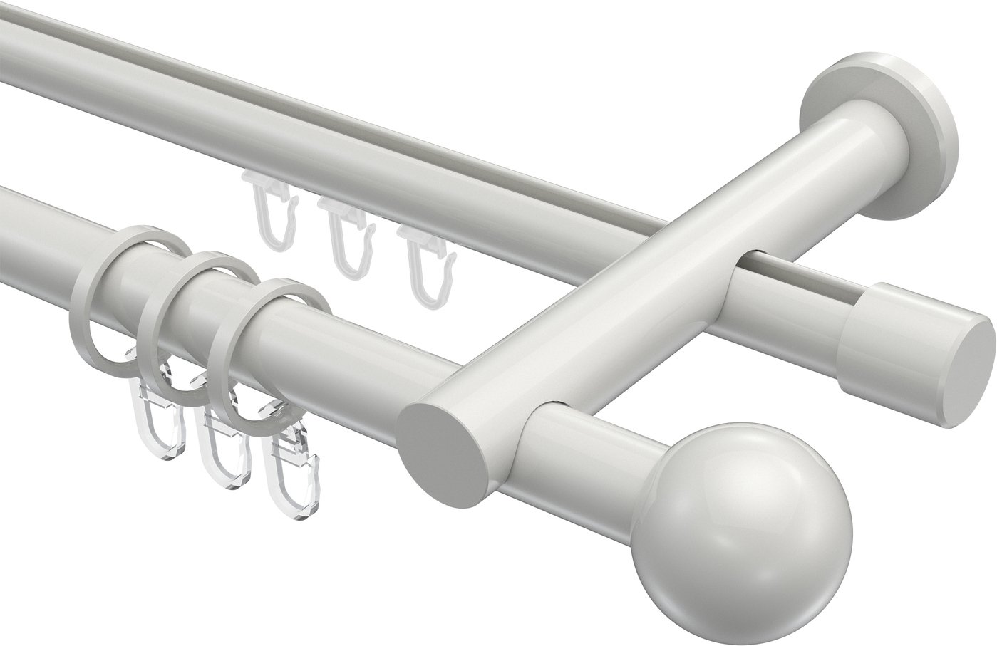 Rundrohr-Innenlauf Gardinenstangen aus Aluminium / Metall in 20 mm Ø, 2-läufig, Modell PLATON - Luino Weiß