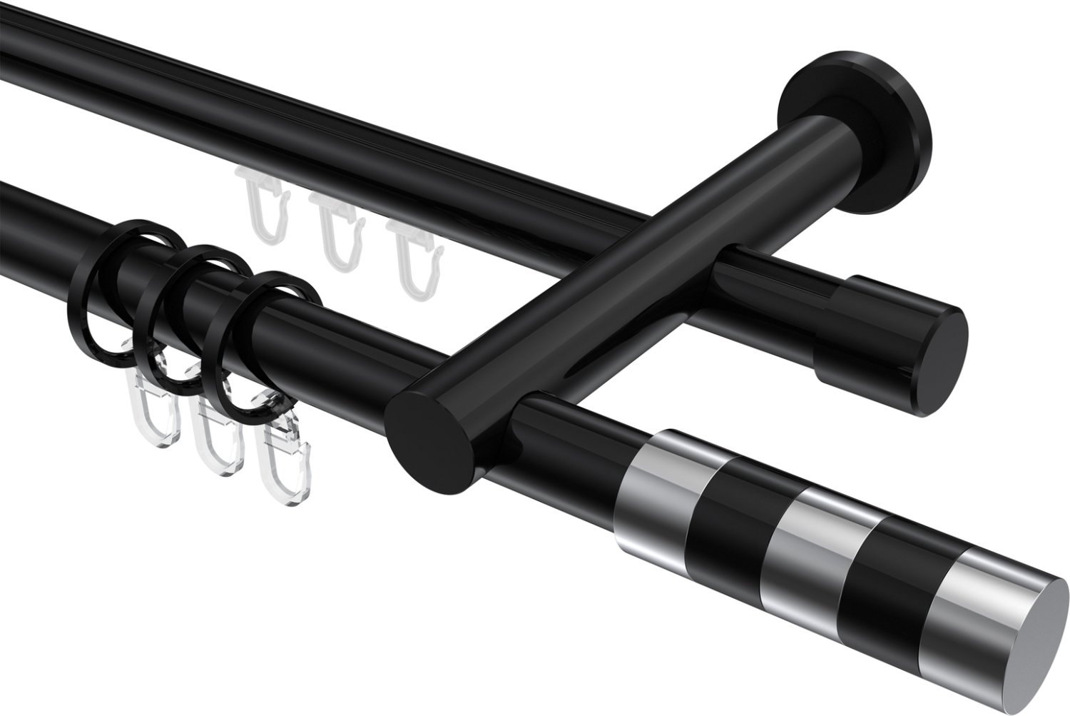 Rundrohr-Innenlauf Gardinenstangen aus Aluminium / Metall in 20 mm Ø, 2-läufig, Modell PLATON - Mavell Schwarz