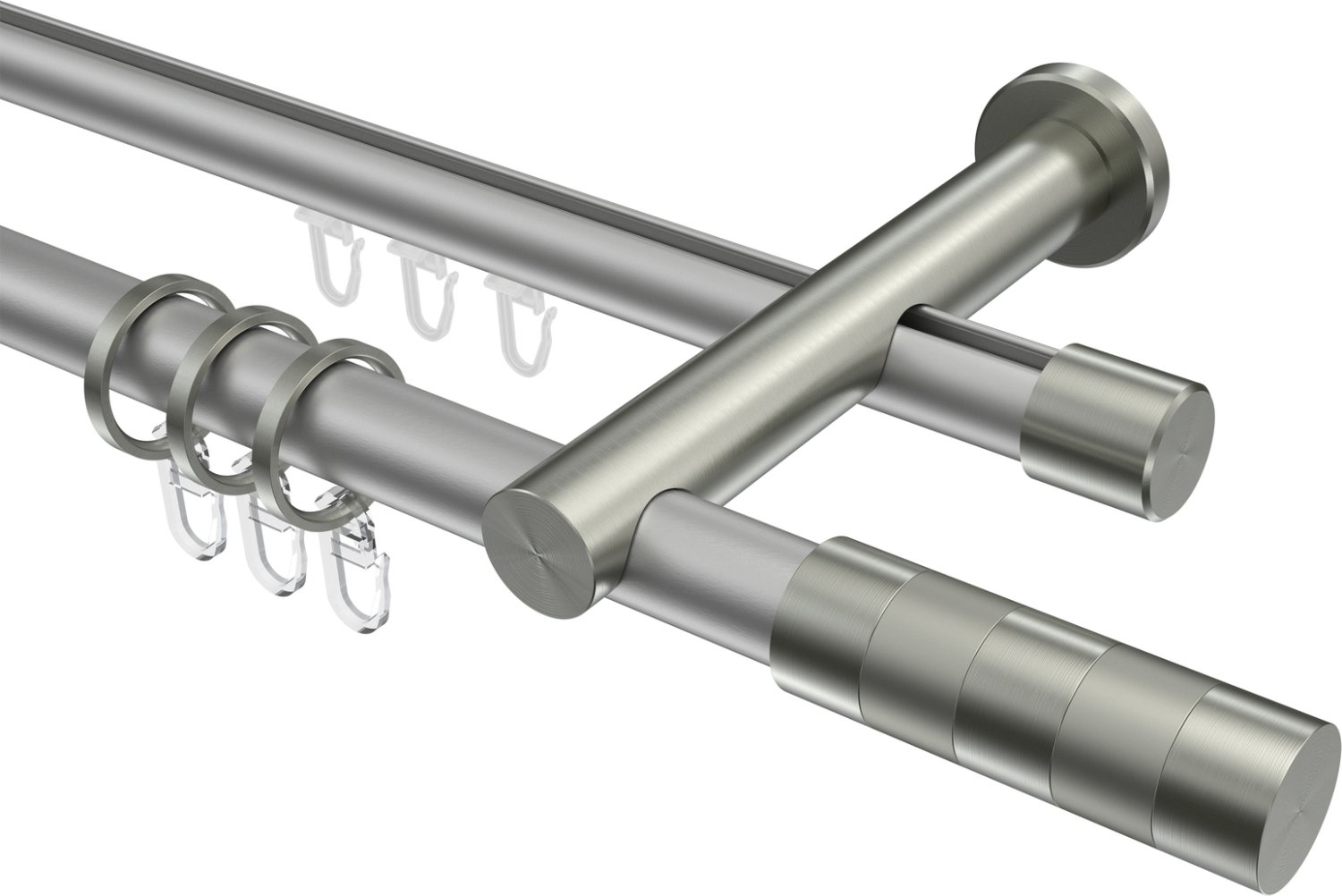 Rundrohr-Innenlauf Gardinenstangen aus Aluminium / Metall in 20 mm Ø, 2-läufig, Modell PLATON - Mavell Silbergrau / Edelstahl-Optik