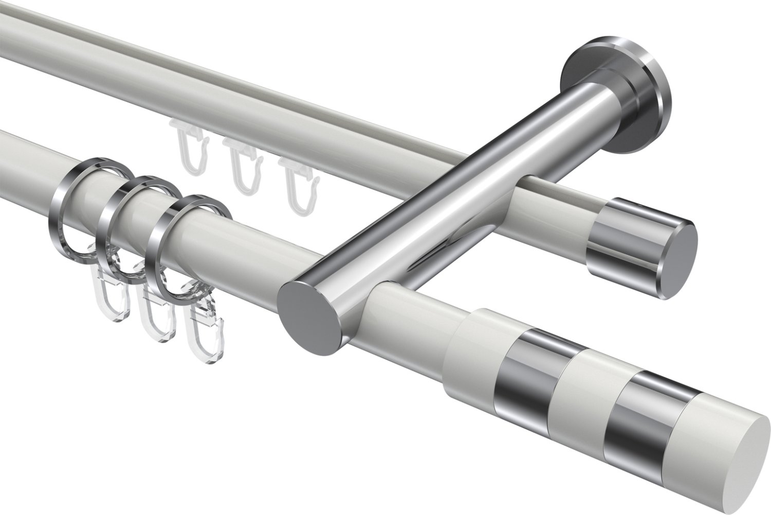 Rundrohr-Innenlauf Gardinenstangen aus Aluminium / Metall in 20 mm Ø, 2-läufig, Modell PLATON - Mavell Weiß / Chrom