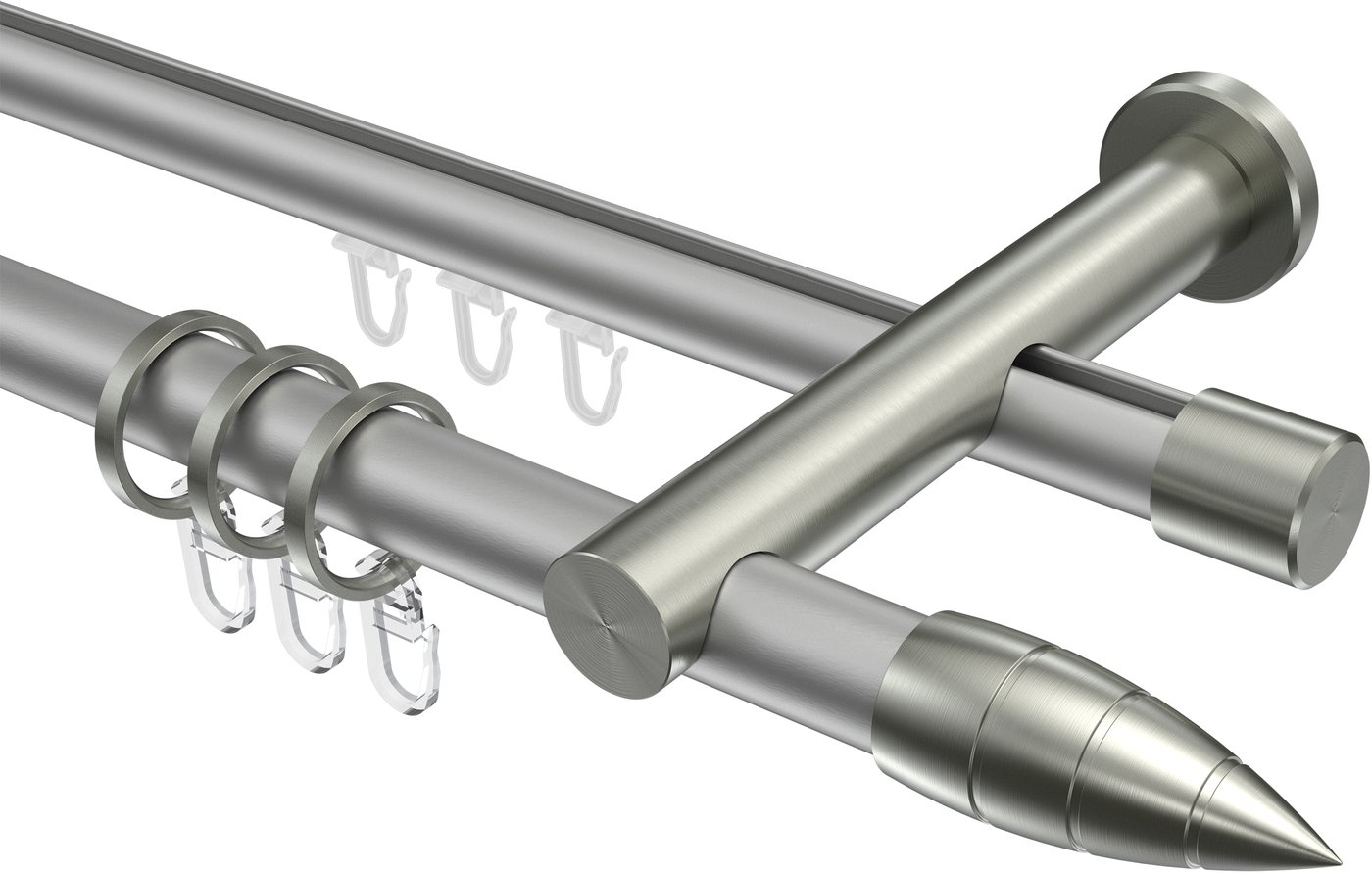 Rundrohr-Innenlauf Gardinenstangen aus Aluminium / Metall in 20 mm Ø, 2-läufig, Modell PLATON - Samanto Silbergrau / Edelstahl-Optik