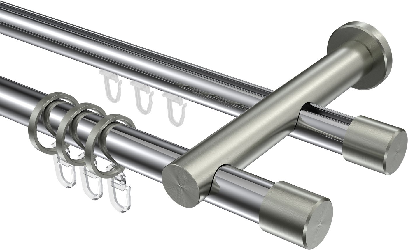 Rundrohr-Innenlauf Gardinenstangen aus Aluminium / Metall in 20 mm Ø, 2-läufig, Modell PLATON - Santo Chrom / Edelstahl-Optik