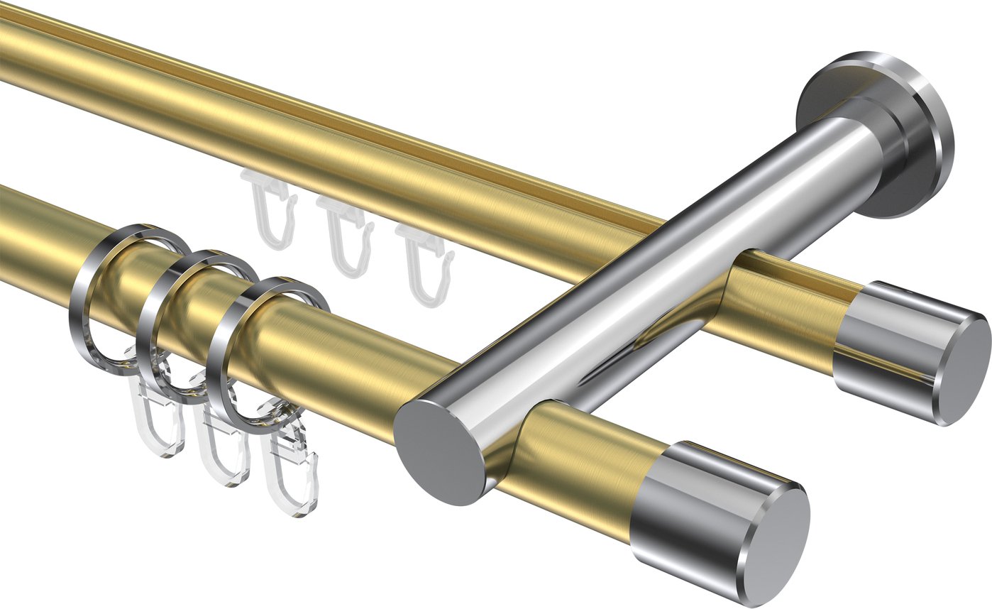 Rundrohr-Innenlauf Gardinenstangen aus Aluminium / Metall in 20 mm Ø, 2-läufig, Modell PLATON - Santo Messing-Optik / Chrom