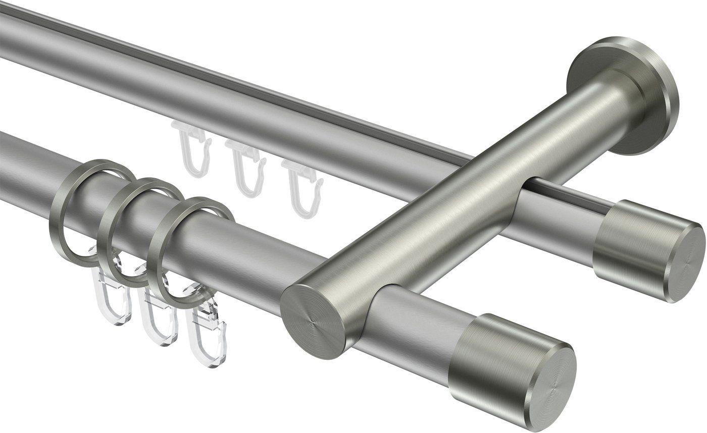 Rundrohr-Innenlauf Gardinenstangen aus Aluminium / Metall in 20 mm Ø, 2-läufig, Modell PLATON - Santo Silbergrau / Edelstahl-Optik