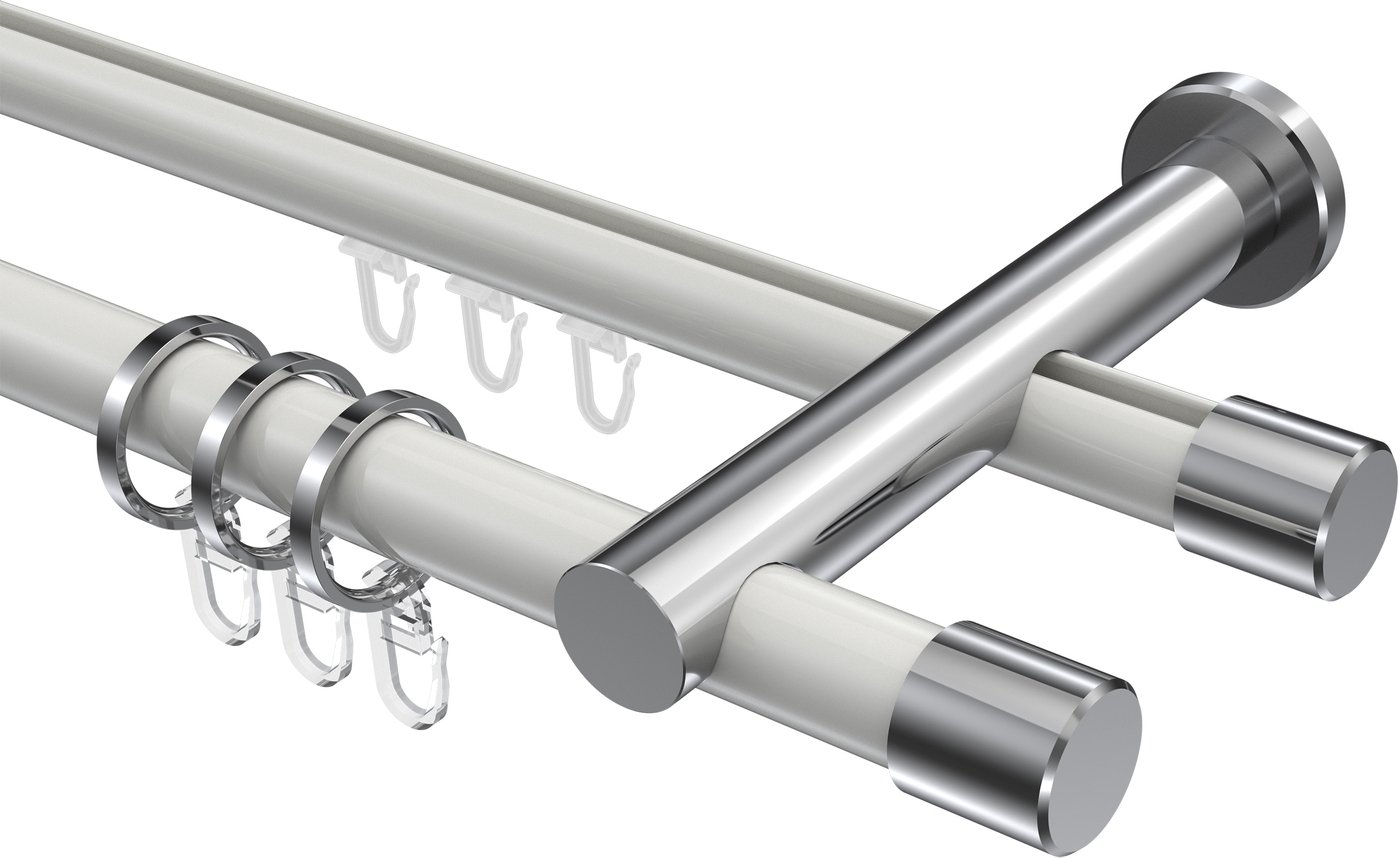 Rundrohr-Innenlauf Gardinenstangen aus Aluminium / Metall in 20 mm Ø, 2-läufig, Modell PLATON - Santo Weiß / Chrom