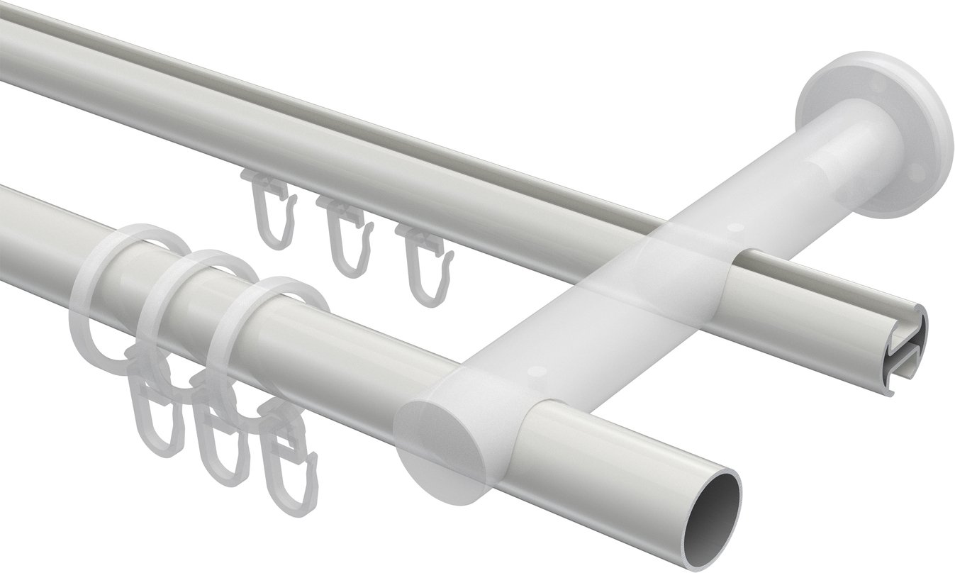 Informationen zu Rundrohr-Innenlauf Gardinenstange Aluminium / Metall 20 mm Ø 2-läufig PLATON - Santo Weiß / Edelstahl-Optik:
