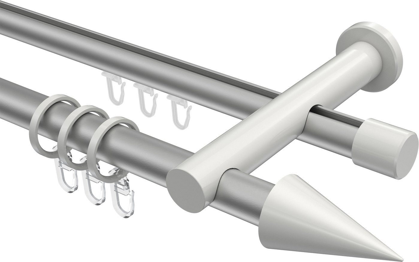 Rundrohr-Innenlauf Gardinenstangen aus Aluminium / Metall in 20 mm Ø, 2-läufig, Modell PLATON - Savio Silbergrau / Weiß