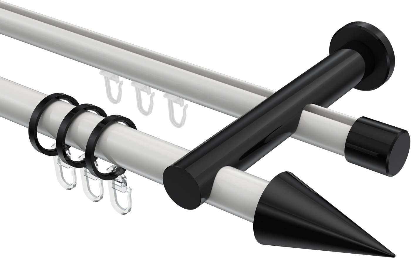 Informationen zu Rundrohr-Innenlauf Gardinenstange Aluminium / Metall 20 mm Ø 2-läufig PLATON - Savio Weiß / Schwarz:
