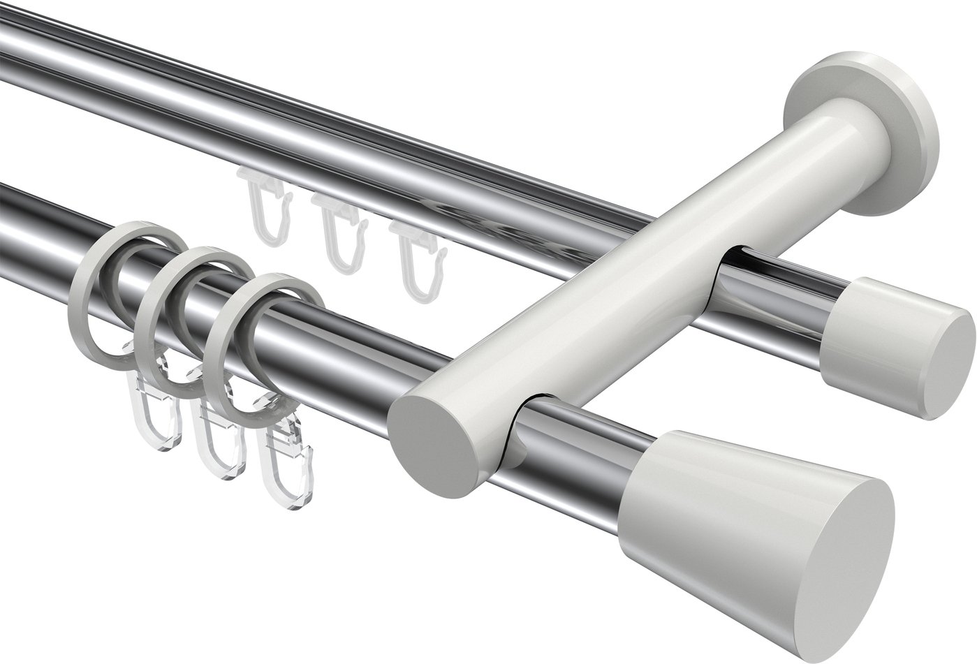 Rundrohr-Innenlauf Gardinenstangen aus Aluminium / Metall in 20 mm Ø, 2-läufig, Modell PLATON - Sitra Chrom / Weiß