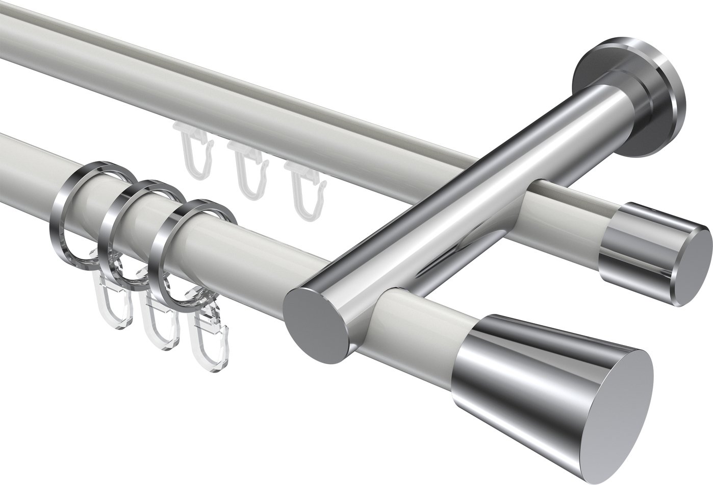 Rundrohr-Innenlauf Gardinenstangen aus Aluminium / Metall in 20 mm Ø, 2-läufig, Modell PLATON - Sitra Weiß / Chrom