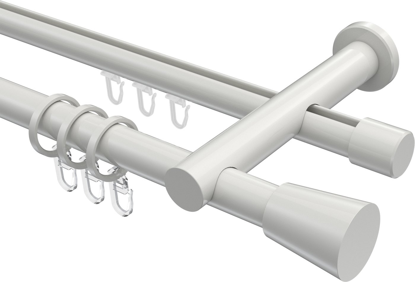 Rundrohr-Innenlauf Gardinenstangen aus Aluminium / Metall in 20 mm Ø, 2-läufig, Modell PLATON - Sitra Weiß