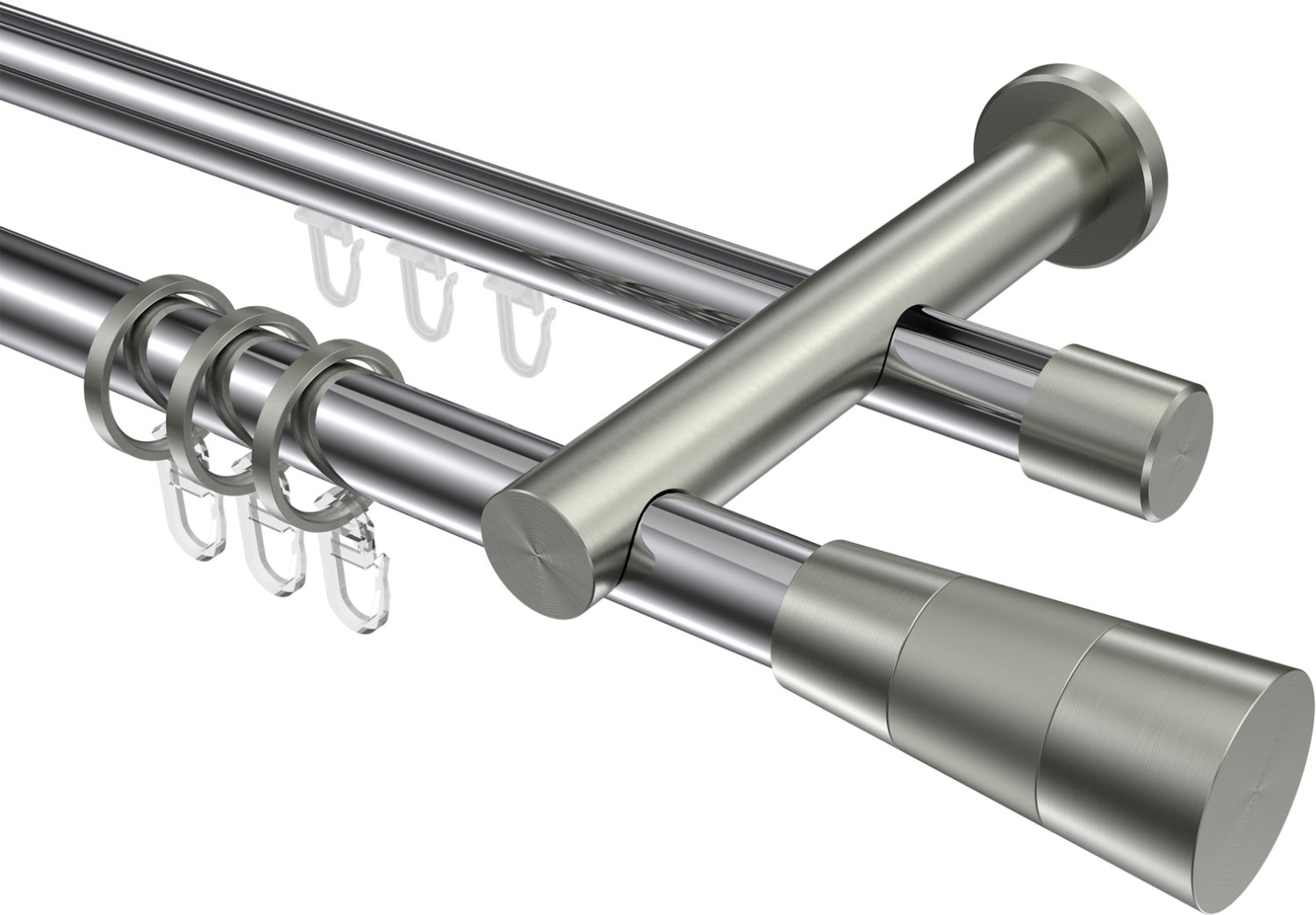 Rundrohr-Innenlauf Gardinenstangen aus Aluminium / Metall in 20 mm Ø, 2-läufig, Modell PLATON - Tanara Chrom / Edelstahl-Optik