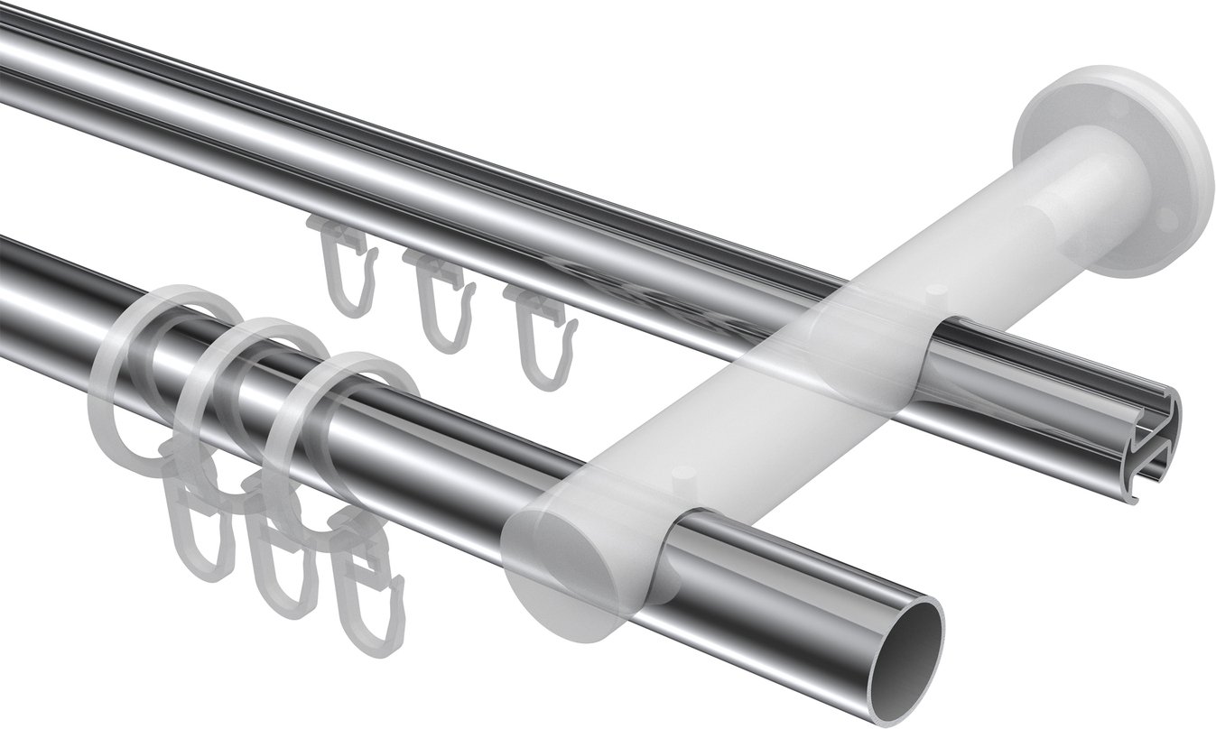 Informationen zu Rundrohr-Innenlauf Gardinenstange Aluminium / Metall 20 mm Ø 2-läufig PLATON - Tanara Chrom / Edelstahl-Optik: