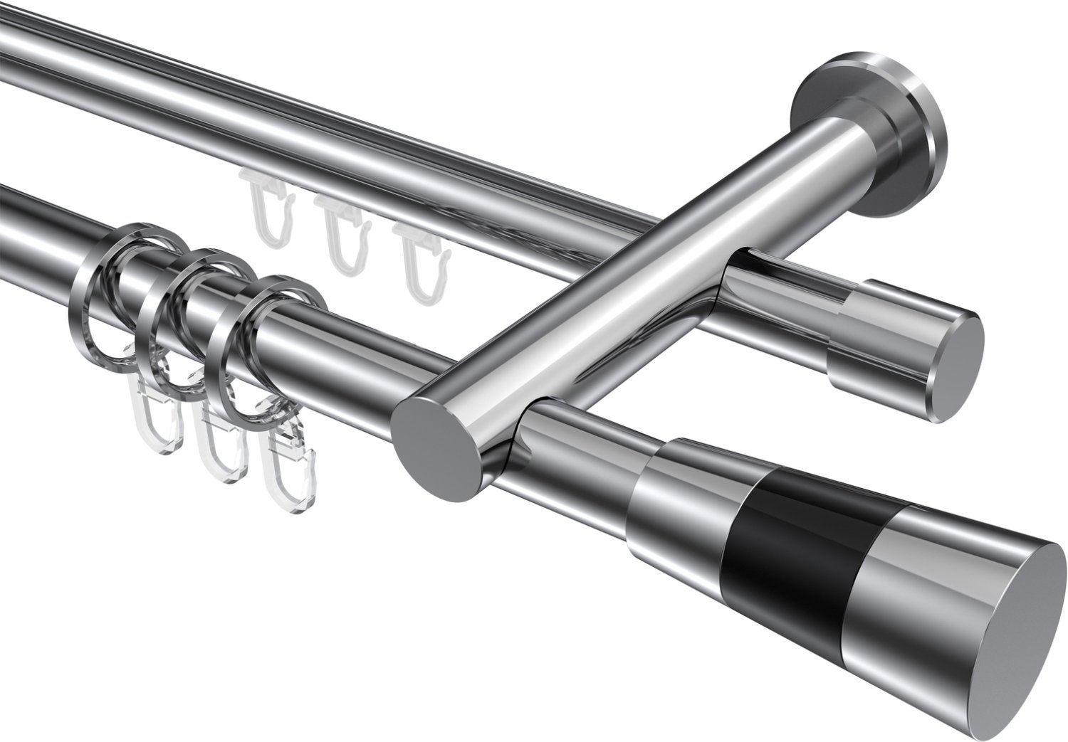 Rundrohr-Innenlauf Gardinenstangen aus Aluminium / Metall in 20 mm Ø, 2-läufig, Modell PLATON - Tanara Chrom