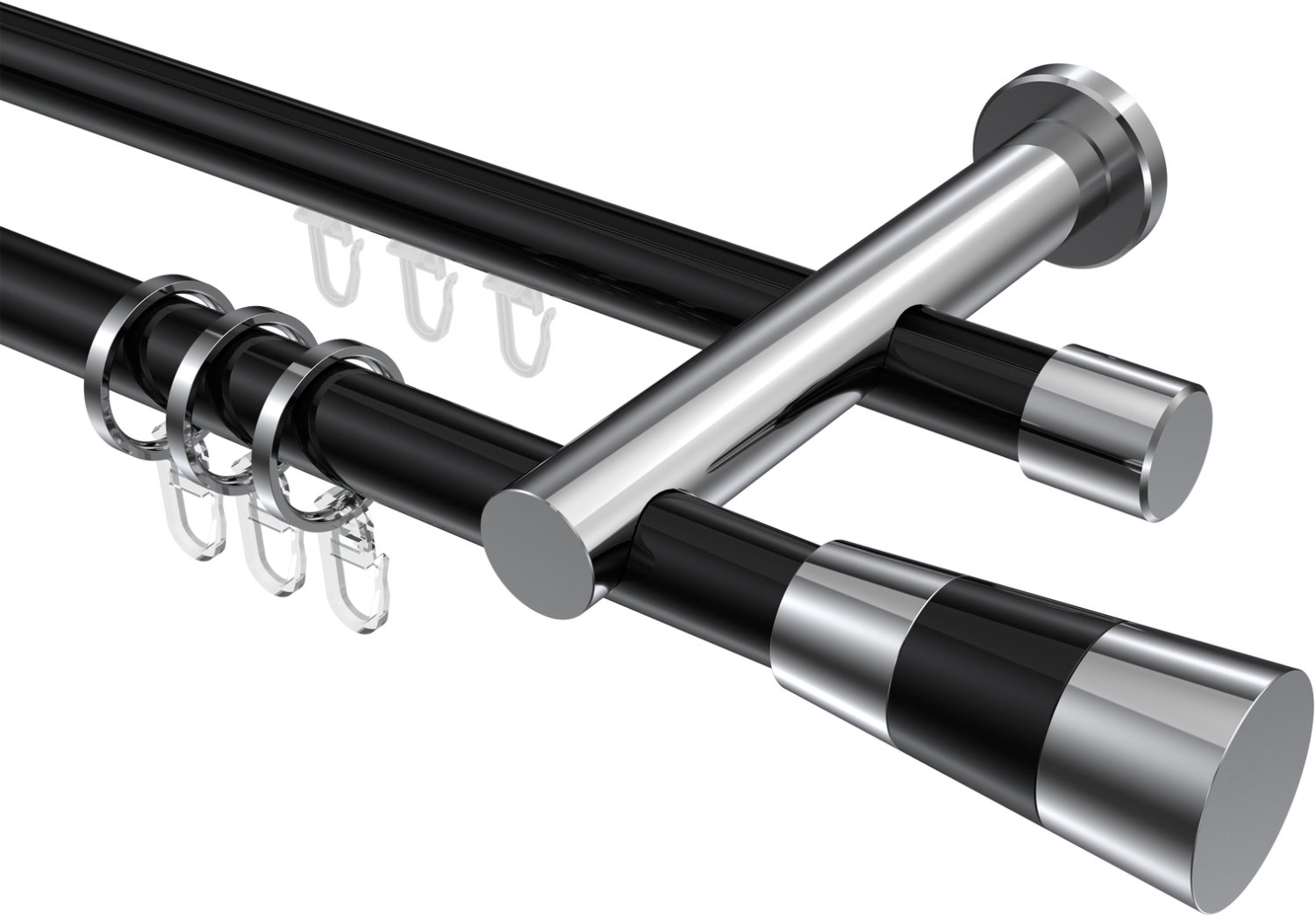 Rundrohr-Innenlauf Gardinenstangen aus Aluminium / Metall in 20 mm Ø, 2-läufig, Modell PLATON - Tanara Schwarz / Chrom