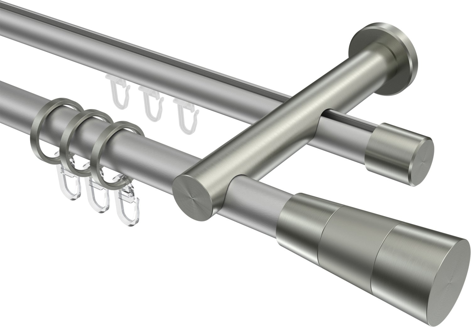 Rundrohr-Innenlauf Gardinenstangen aus Aluminium / Metall in 20 mm Ø, 2-läufig, Modell PLATON - Tanara Silbergrau / Edelstahl-Optik