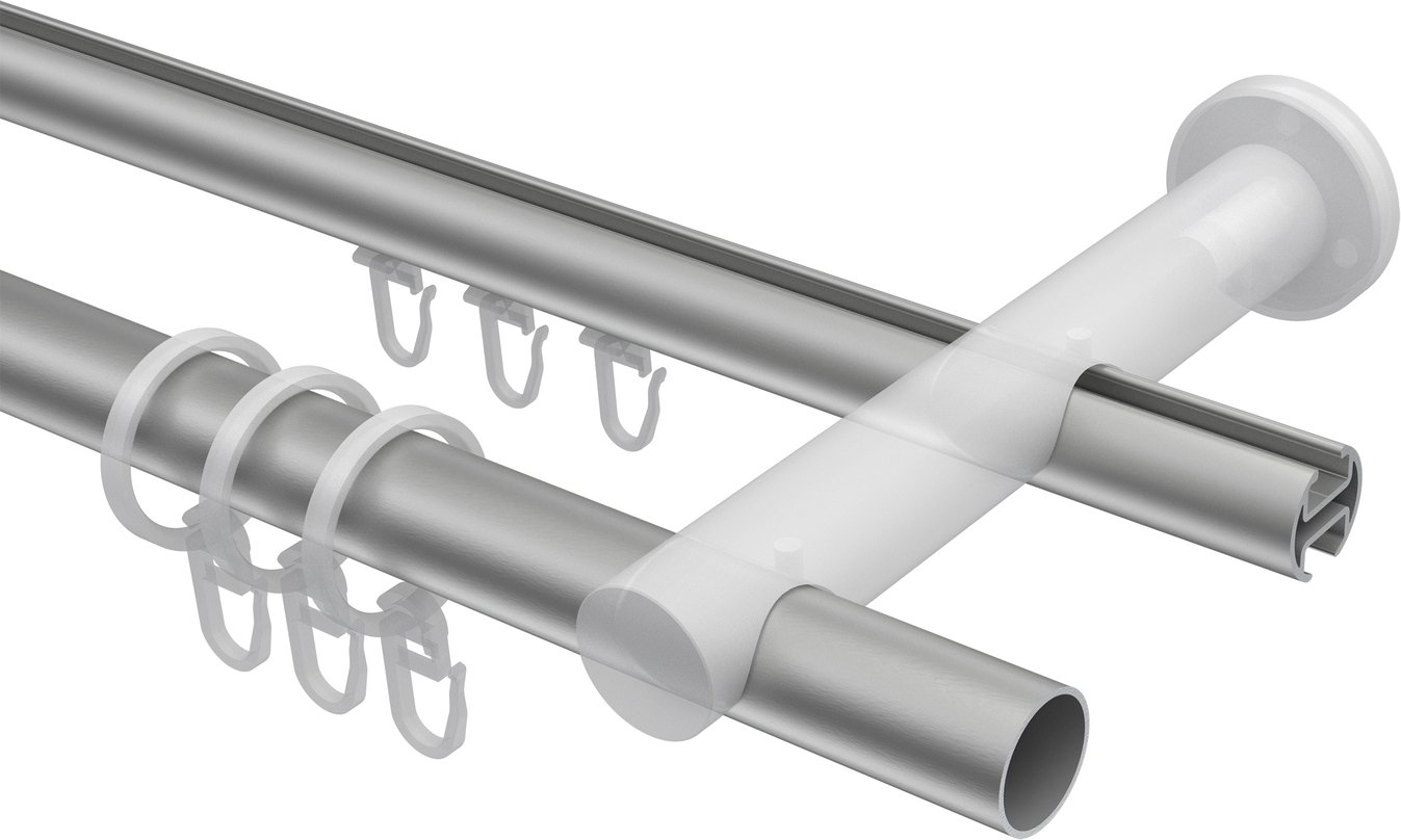 Informationen zu Rundrohr-Innenlauf Gardinenstange Aluminium / Metall 20 mm Ø 2-läufig PLATON - Tanara Silbergrau / Edelstahl-Optik: