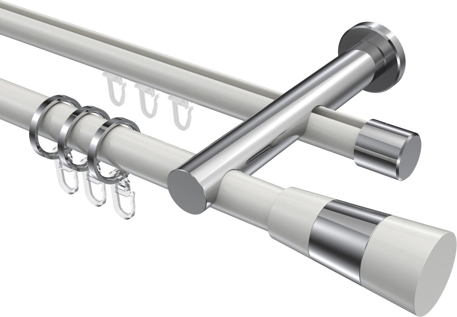 Rundrohr-Innenlauf Gardinenstangen aus Aluminium / Metall in 20 mm Ø, 2-läufig, Modell PLATON - Tanara Weiß / Chrom
