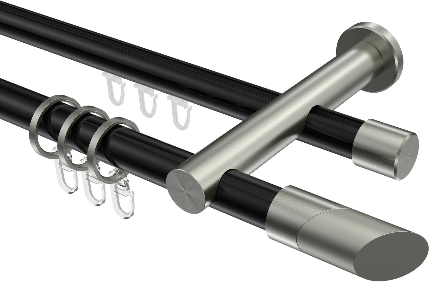 Rundrohr-Innenlauf Gardinenstangen aus Aluminium / Metall in 20 mm Ø, 2-läufig, Modell PLATON - Verano Schwarz / Edelstahl-Optik