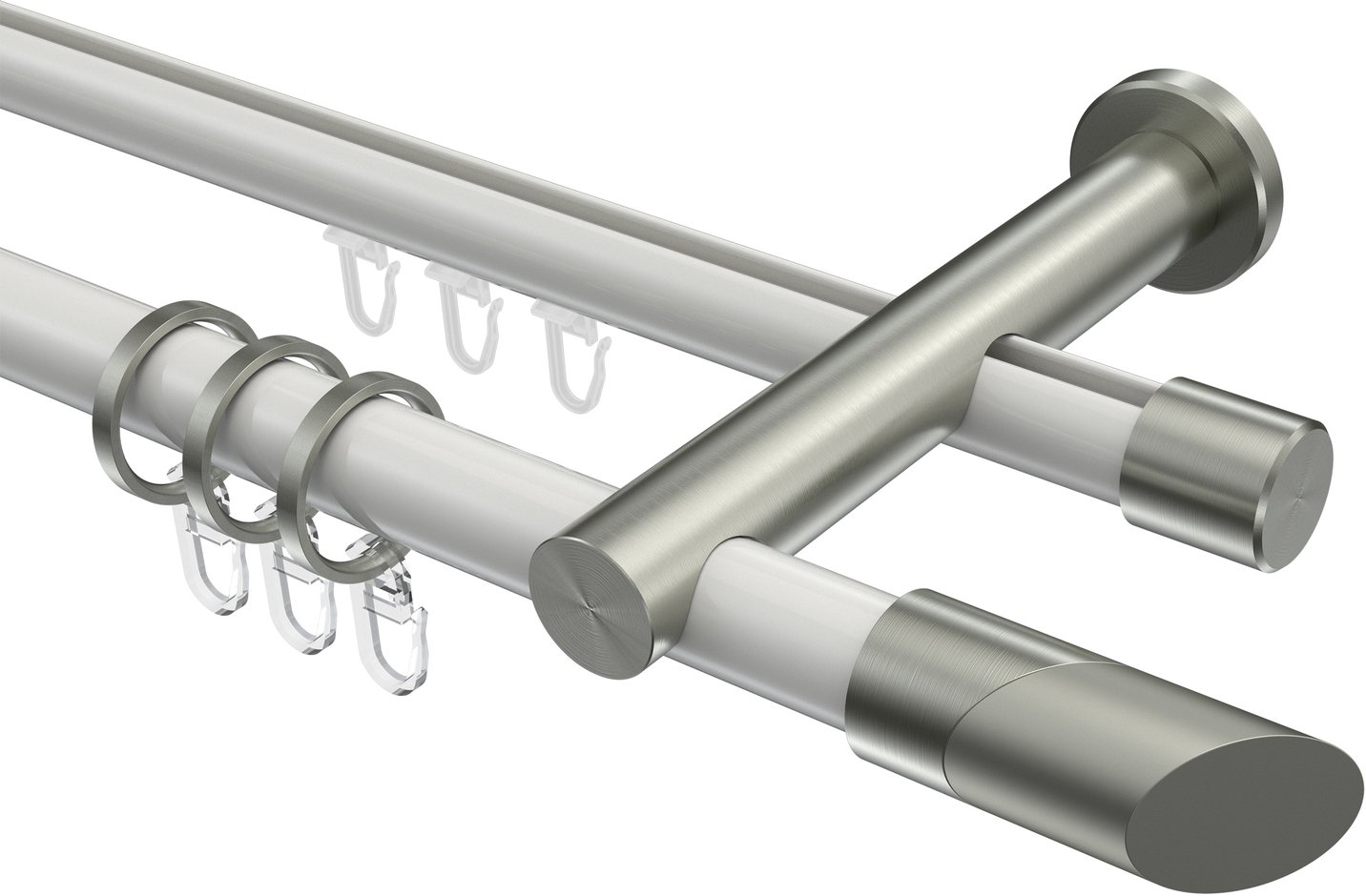 Rundrohr-Innenlauf Gardinenstangen aus Aluminium / Metall in 20 mm Ø, 2-läufig, Modell PLATON - Verano Weiß / Edelstahl-Optik