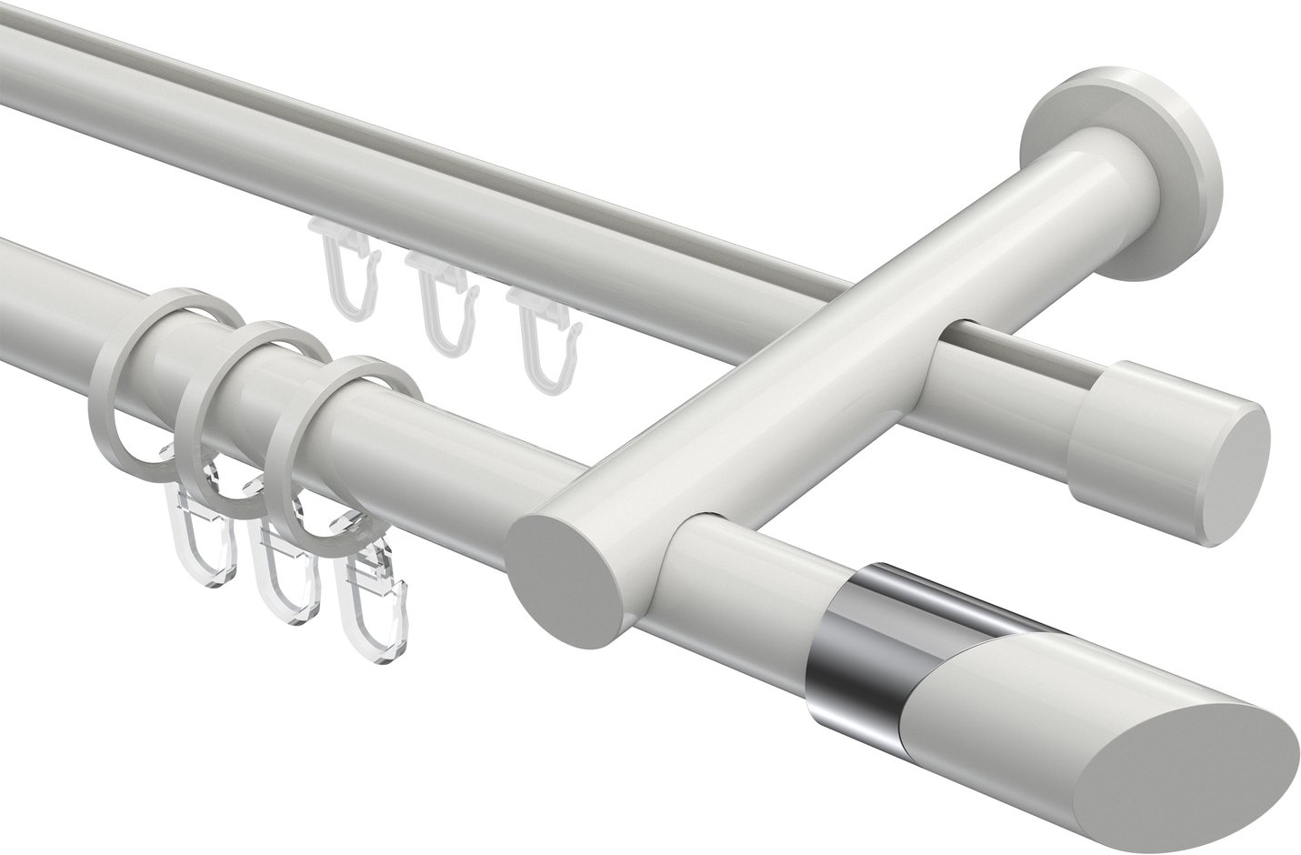 Rundrohr-Innenlauf Gardinenstangen aus Aluminium / Metall in 20 mm Ø, 2-läufig, Modell PLATON - Verano Weiß