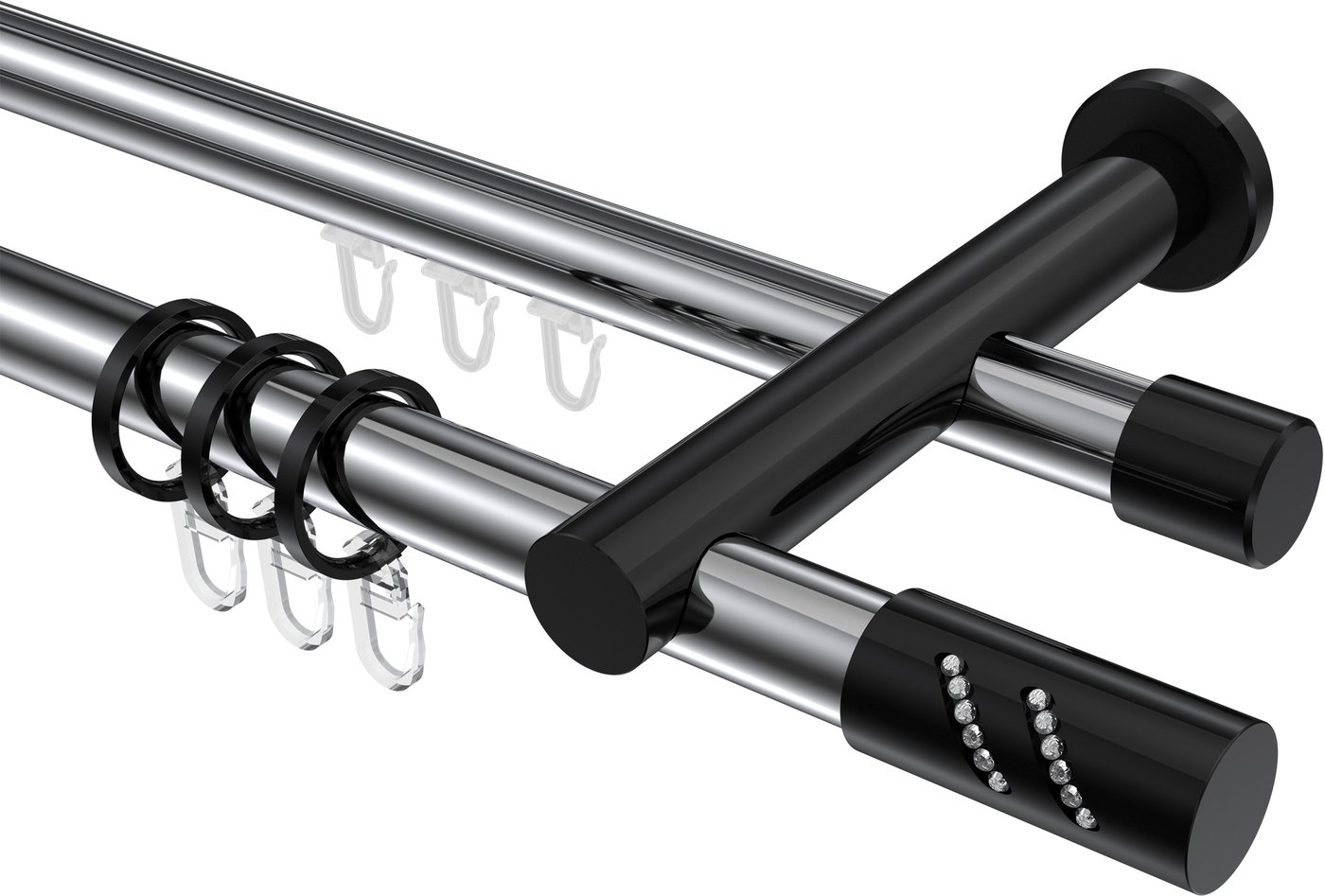 Rundrohr-Innenlauf Gardinenstangen aus Aluminium / Metall in 20 mm Ø, 2-läufig, Modell PLATON - Zoena Chrom / Schwarz