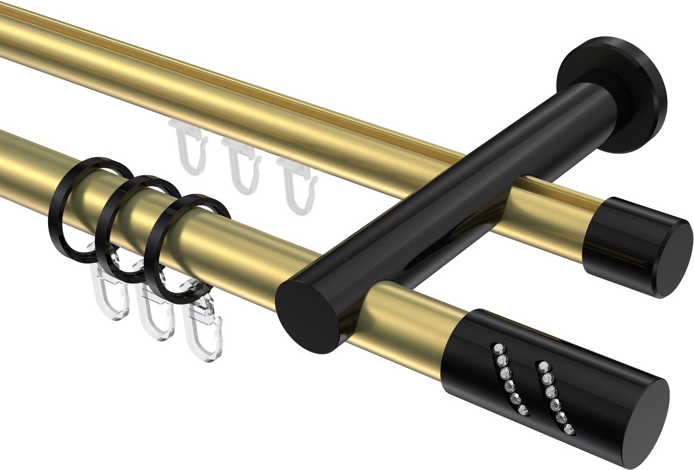Rundrohr-Innenlauf Gardinenstangen aus Aluminium / Metall in 20 mm Ø, 2-läufig, Modell PLATON - Zoena Messing-Optik / Schwarz