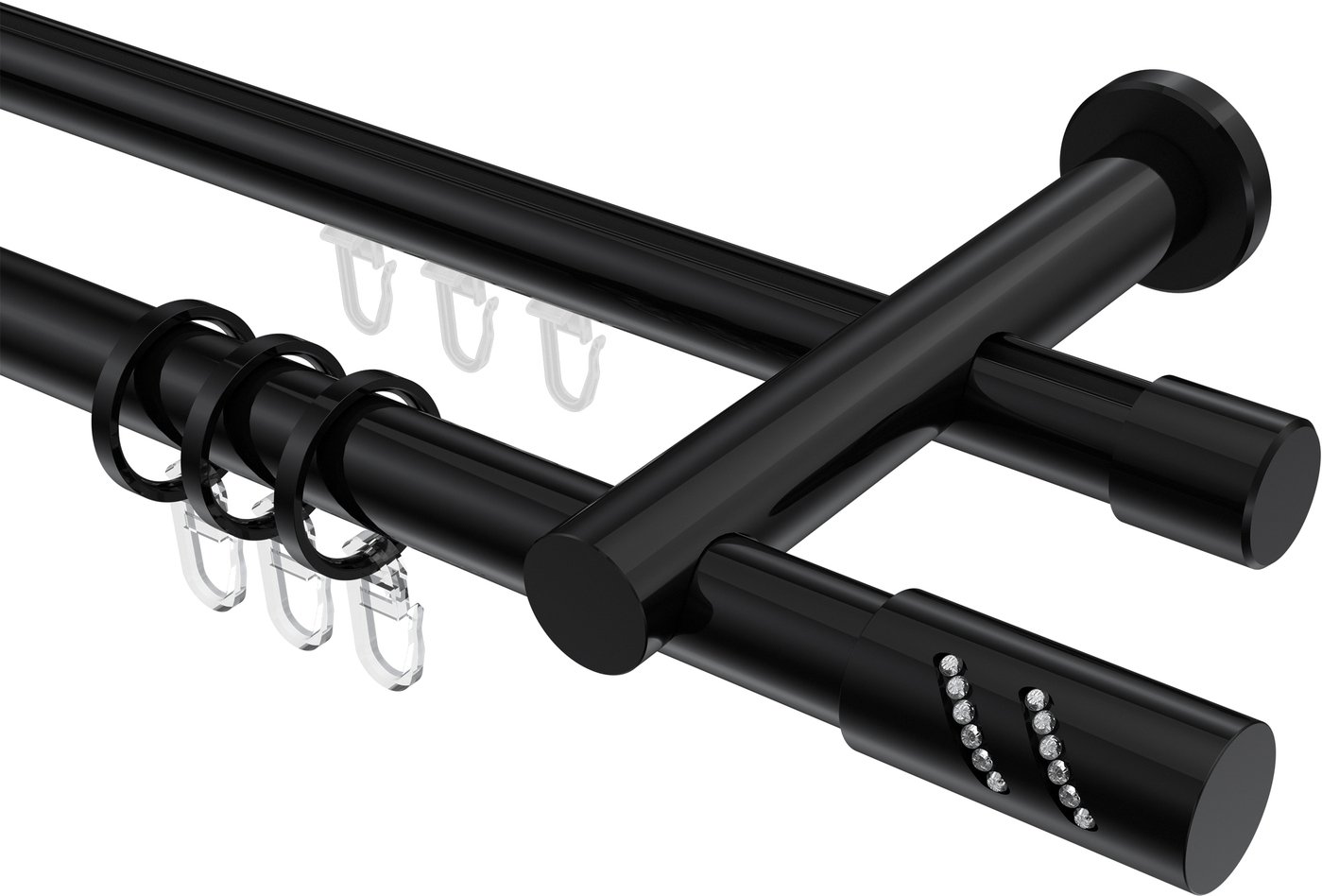 Rundrohr-Innenlauf Gardinenstangen aus Aluminium / Metall in 20 mm Ø, 2-läufig, Modell PLATON - Zoena Schwarz