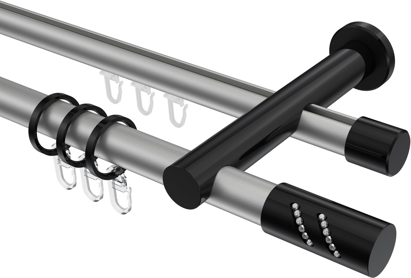 Rundrohr-Innenlauf Gardinenstangen aus Aluminium / Metall in 20 mm Ø, 2-läufig, Modell PLATON - Zoena Silbergrau / Schwarz