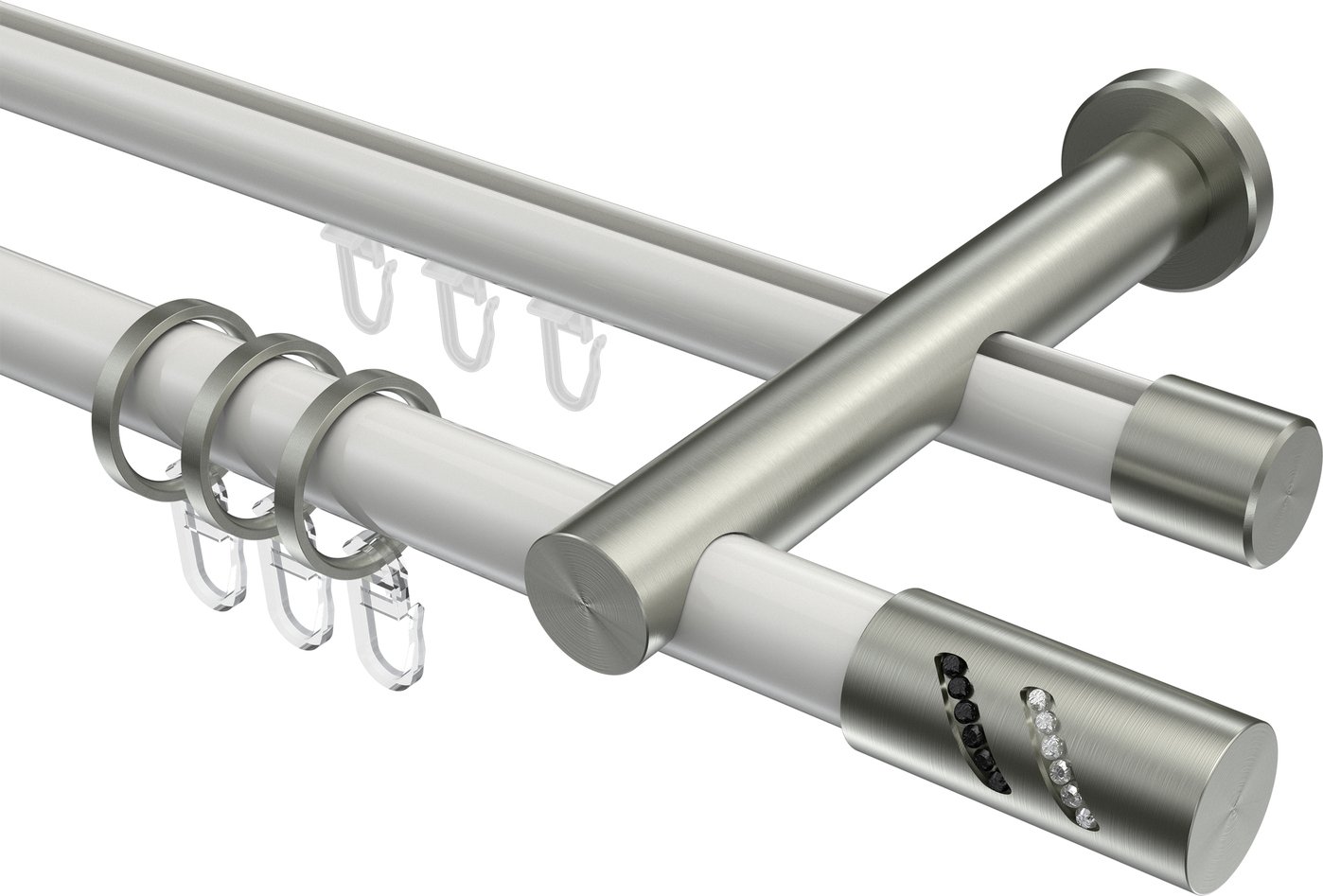 Rundrohr-Innenlauf Gardinenstangen aus Aluminium / Metall in 20 mm Ø, 2-läufig, Modell PLATON - Zoena Weiß / Edelstahl-Optik