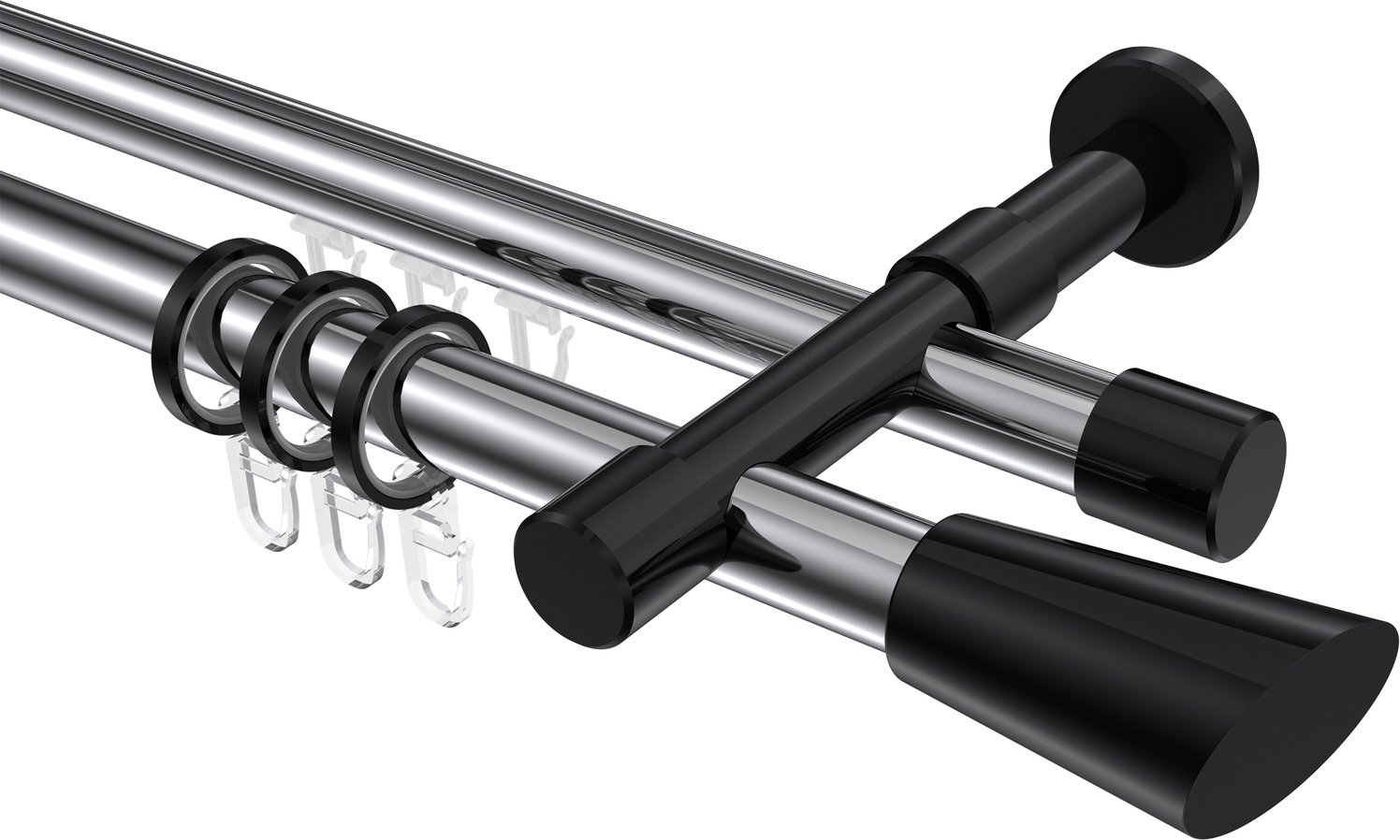 Rundrohr-Innenlauf Gardinenstangen aus Aluminium / Metall in 20 mm Ø, 2-läufig, Modell PRESTIGE - Bento Chrom / Schwarz