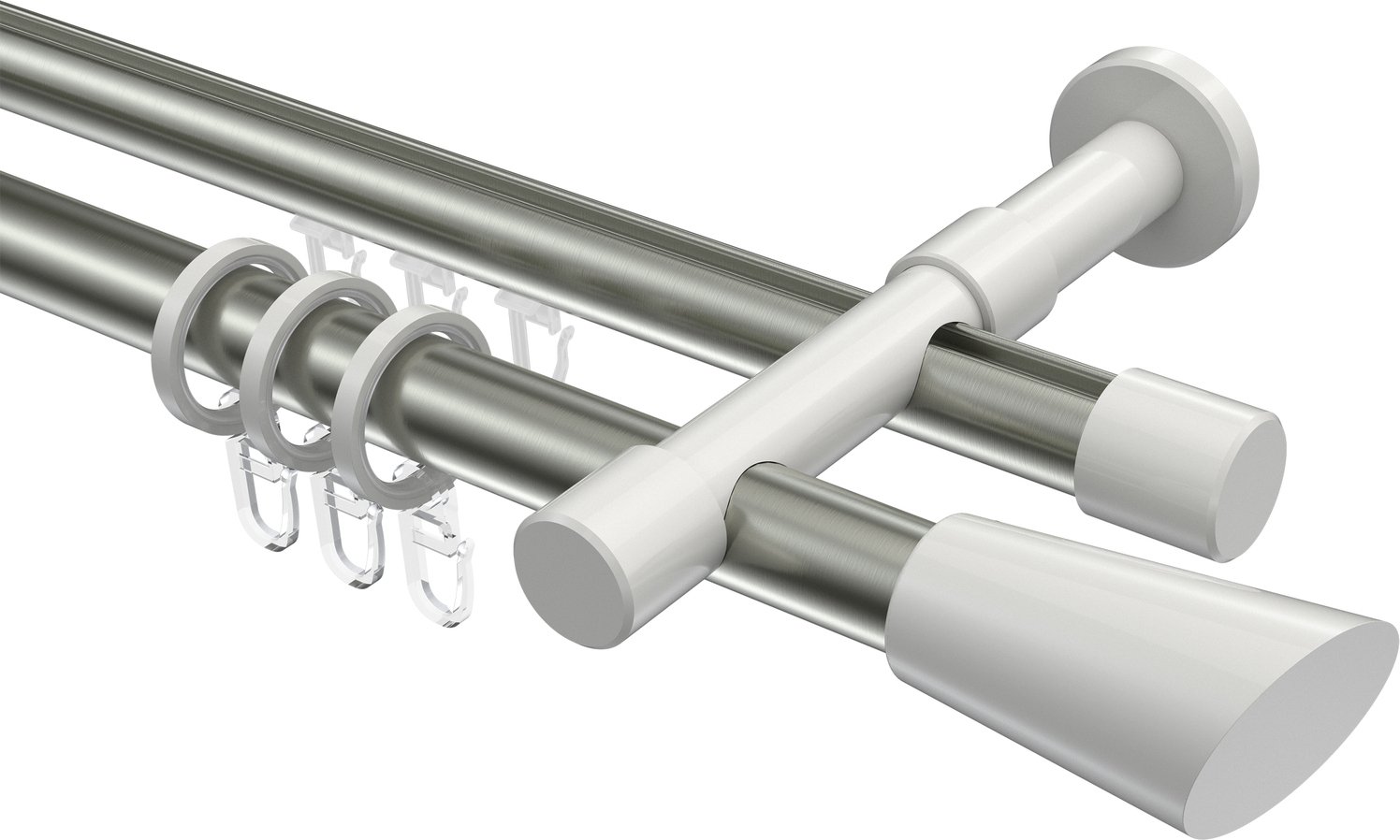 Rundrohr-Innenlauf Gardinenstangen aus Aluminium / Metall in 20 mm Ø, 2-läufig, Modell PRESTIGE - Bento Edelstahl-Optik / Weiß