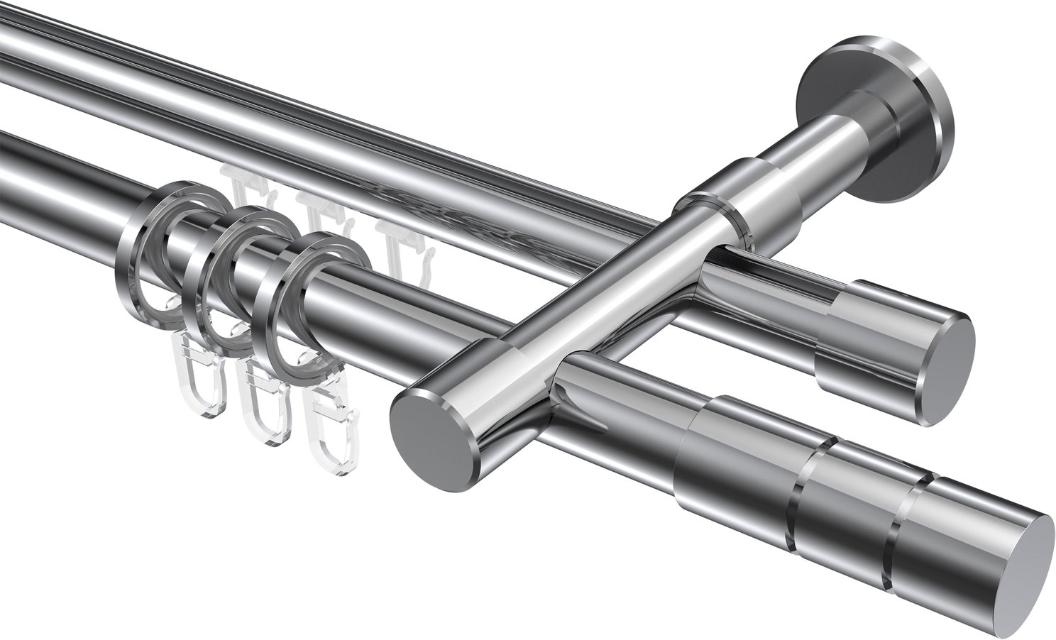 Rundrohr-Innenlauf Gardinenstangen aus Aluminium / Metall in 20 mm Ø, 2-läufig, Modell PRESTIGE - Elanto Chrom