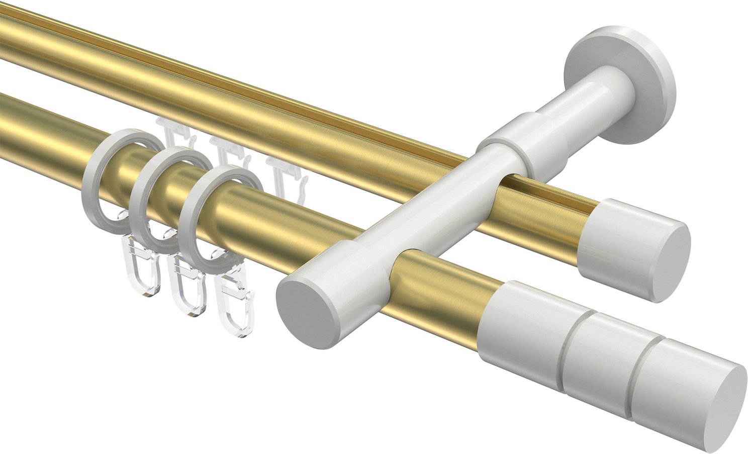Rundrohr-Innenlauf Gardinenstangen aus Aluminium / Metall in 20 mm Ø, 2-läufig, Modell PRESTIGE - Elanto Messing-Optik / Weiß