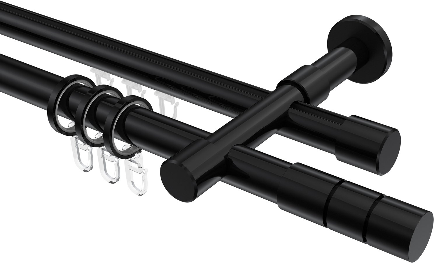Rundrohr-Innenlauf Gardinenstangen aus Aluminium / Metall in 20 mm Ø, 2-läufig, Modell PRESTIGE - Elanto Schwarz