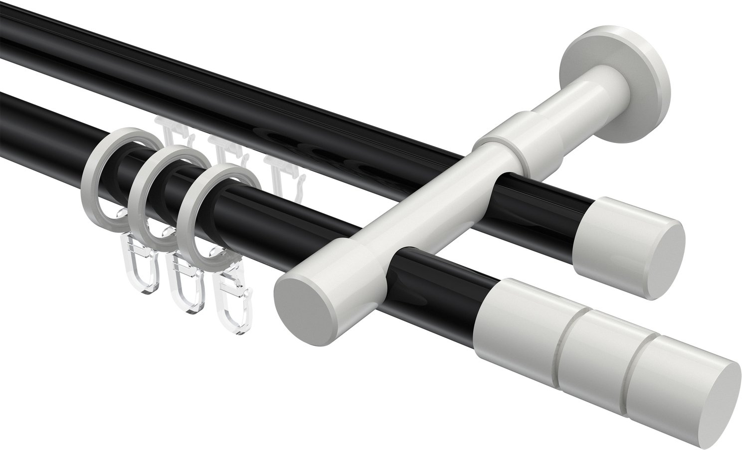 Rundrohr-Innenlauf Gardinenstangen aus Aluminium / Metall in 20 mm Ø, 2-läufig, Modell PRESTIGE - Elanto Schwarz / Weiß