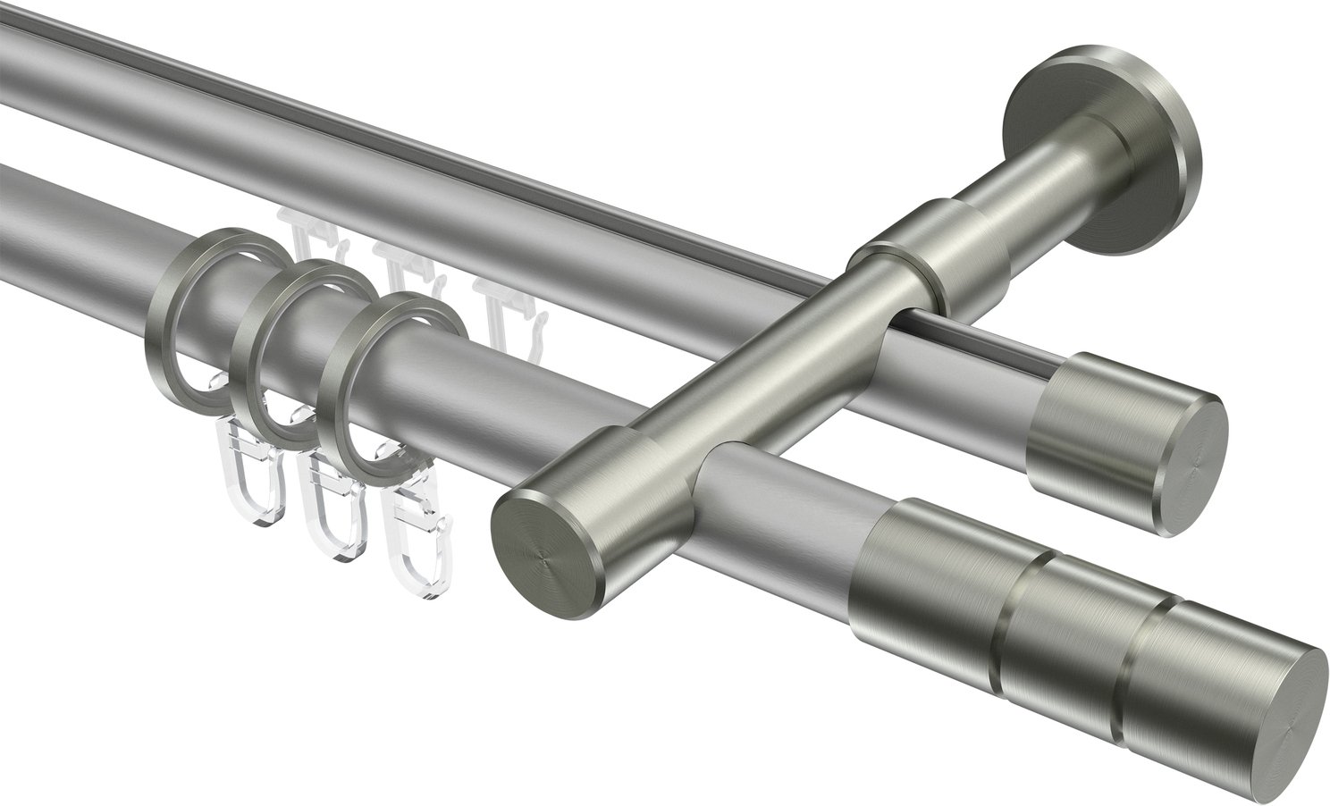 Rundrohr-Innenlauf Gardinenstangen aus Aluminium / Metall in 20 mm Ø, 2-läufig, Modell PRESTIGE - Elanto Silbergrau / Edelstahl-Optik