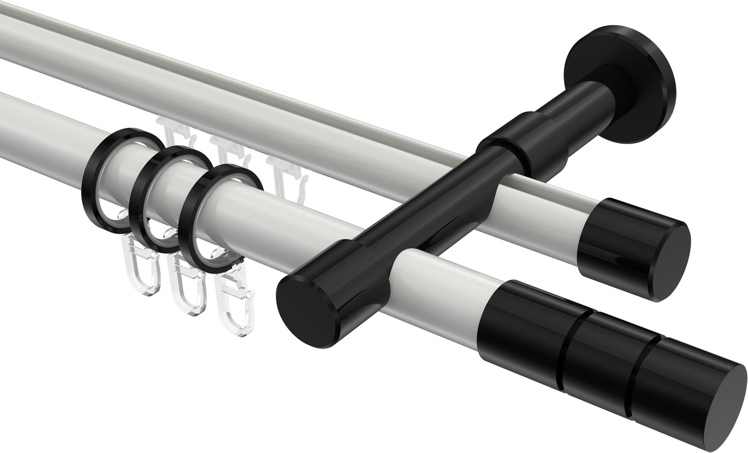 Rundrohr-Innenlauf Gardinenstangen aus Aluminium / Metall in 20 mm Ø, 2-läufig, Modell PRESTIGE - Elanto Weiß / Schwarz