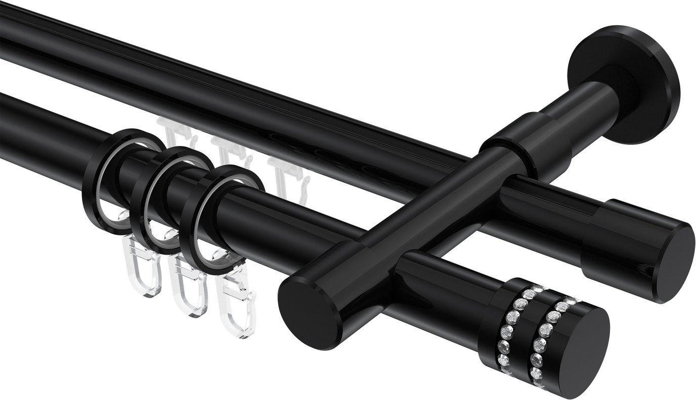 Rundrohr-Innenlauf Gardinenstangen aus Aluminium / Metall in 20 mm Ø, 2-läufig, Modell PRESTIGE - Estana Schwarz