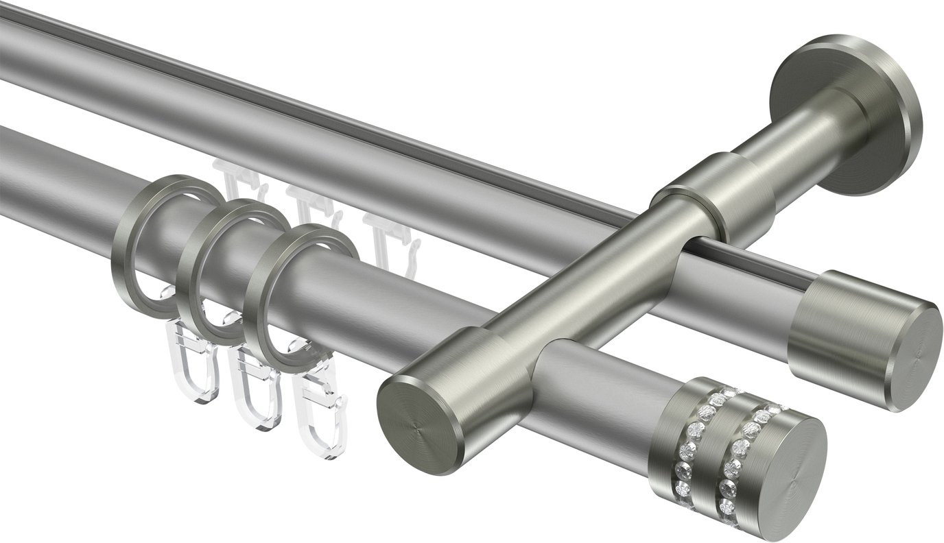 Rundrohr-Innenlauf Gardinenstangen aus Aluminium / Metall in 20 mm Ø, 2-läufig, Modell PRESTIGE - Estana Silbergrau / Edelstahl-Optik