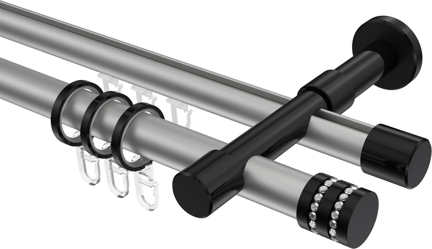 Rundrohr-Innenlauf Gardinenstangen aus Aluminium / Metall in 20 mm Ø, 2-läufig, Modell PRESTIGE - Estana Silbergrau / Schwarz