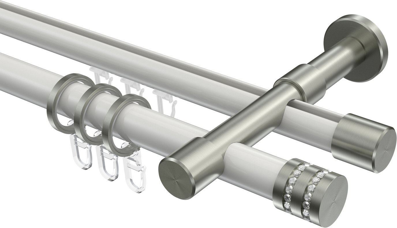 Informationen zu Rundrohr-Innenlauf Gardinenstange Aluminium / Metall 20 mm Ø 2-läufig PRESTIGE - Estana Weiß / Edelstahl-Optik:
