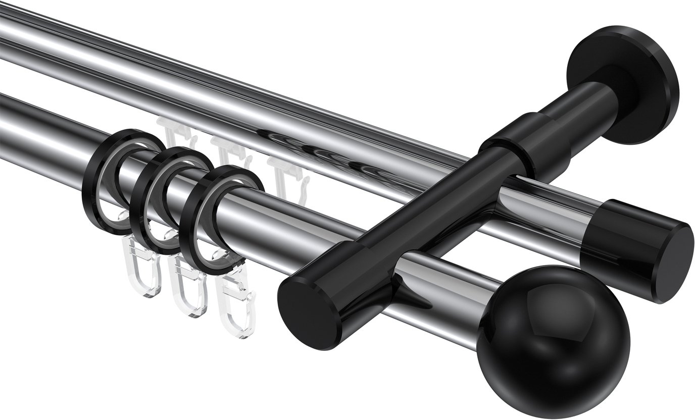 Rundrohr-Innenlauf Gardinenstangen aus Aluminium / Metall in 20 mm Ø, 2-läufig, Modell PRESTIGE - Luino Chrom / Schwarz