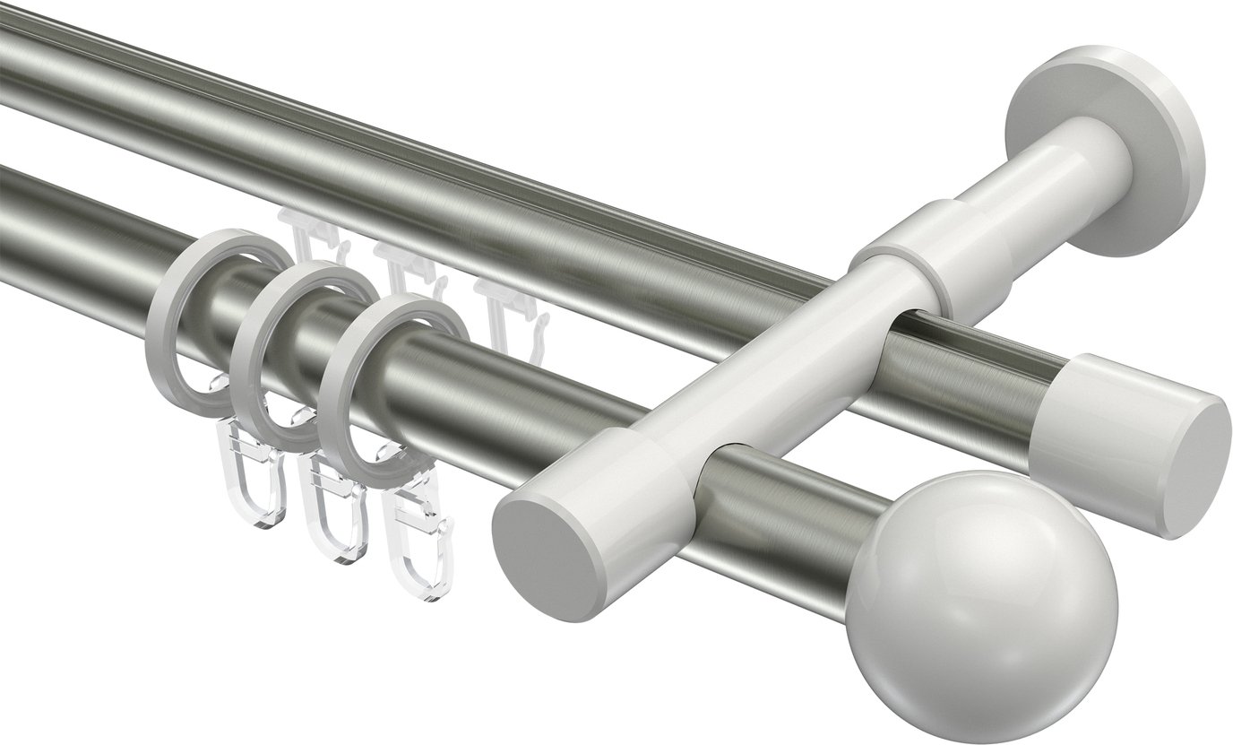 Rundrohr-Innenlauf Gardinenstangen aus Aluminium / Metall in 20 mm Ø, 2-läufig, Modell PRESTIGE - Luino Edelstahl-Optik / Weiß