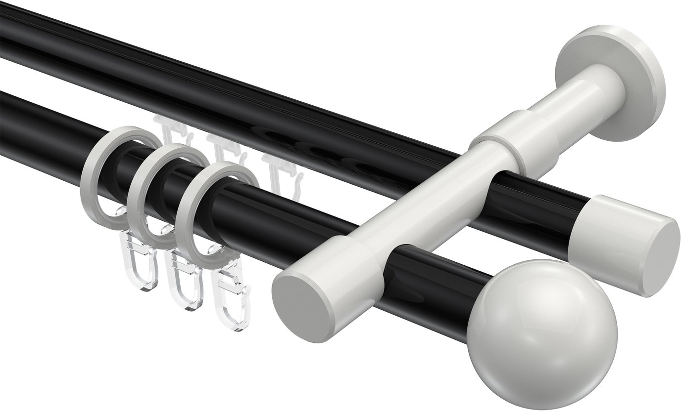 Rundrohr-Innenlauf Gardinenstangen aus Aluminium / Metall in 20 mm Ø, 2-läufig, Modell PRESTIGE - Luino Schwarz / Weiß